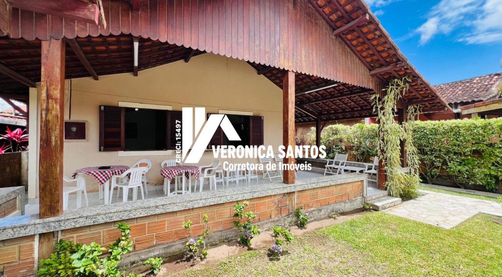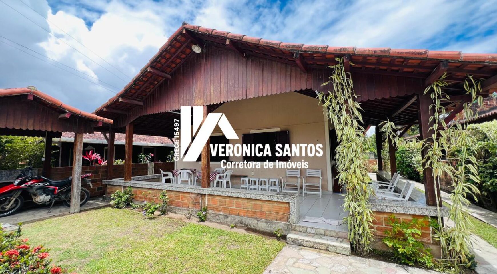 Na área externa, o imóvel se destaca por sua varanda espaçosa, ideal para momentos de descanso, além de uma excelente área gourmet, perfeita para confraternizações. O jardim traz charme e contato com a natureza, criando um ambiente agradável e acolhedor. A garagem possui capacidade para até quatro carros, oferecendo comodidade e segurança.