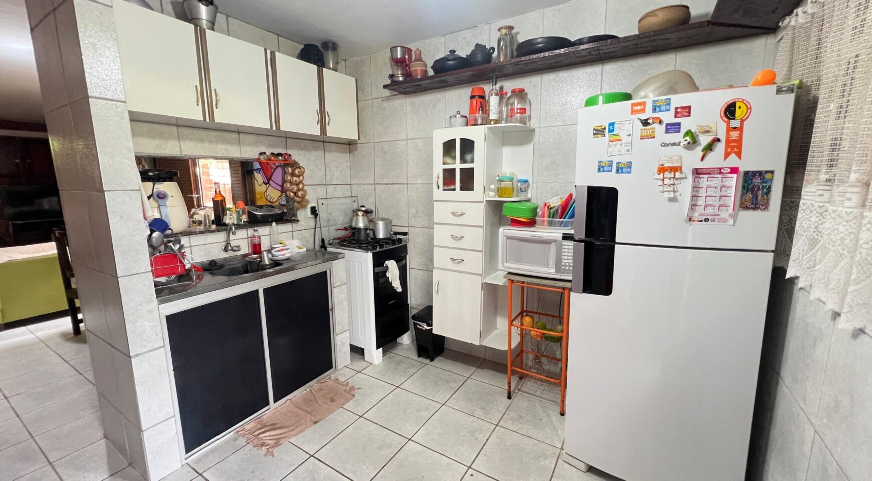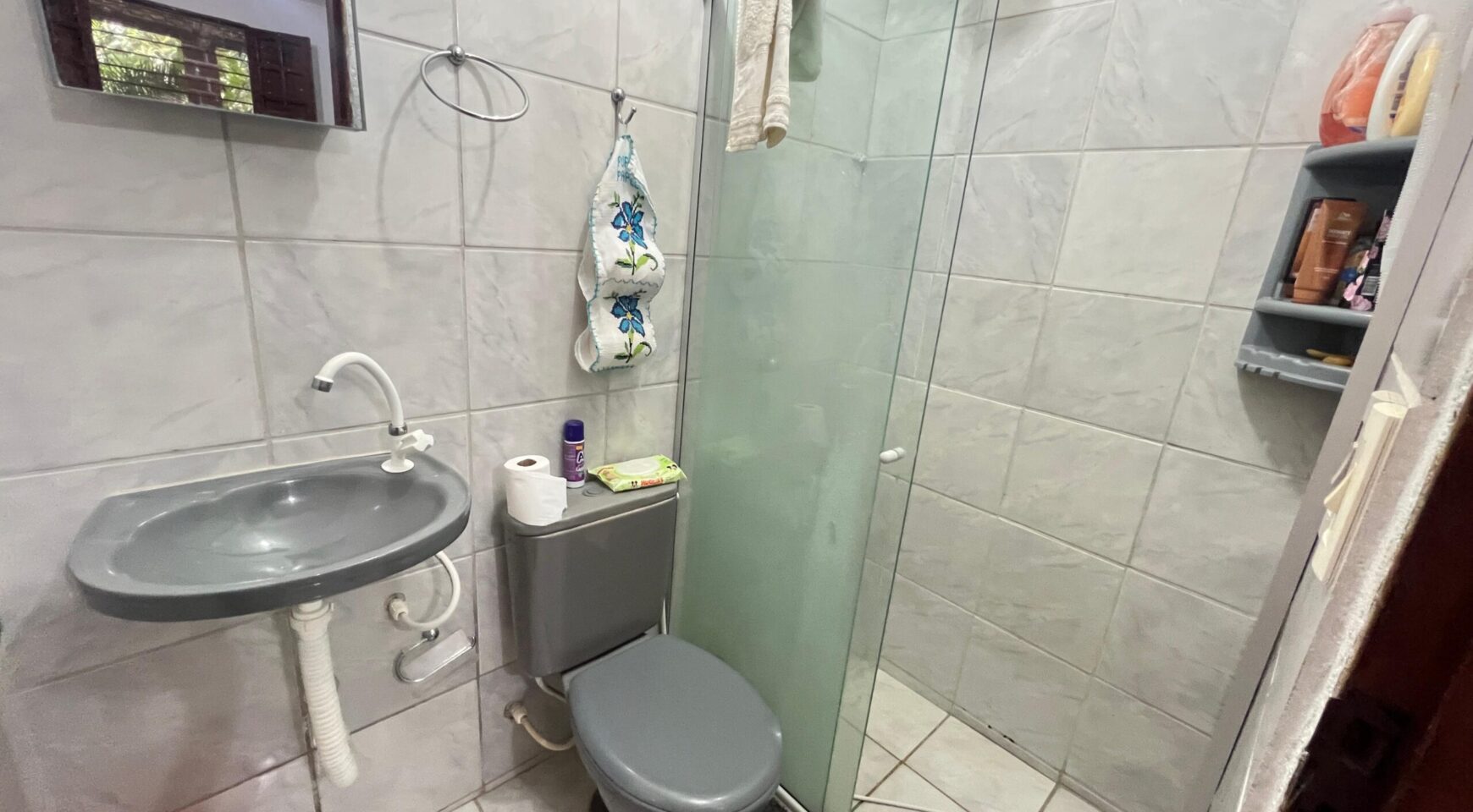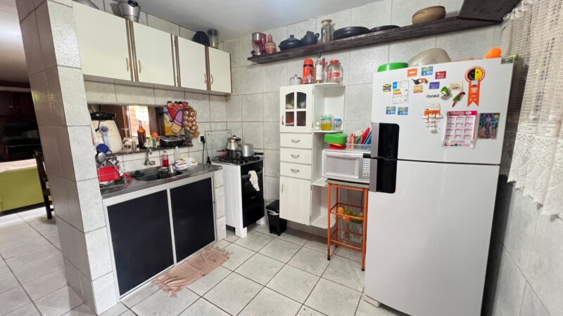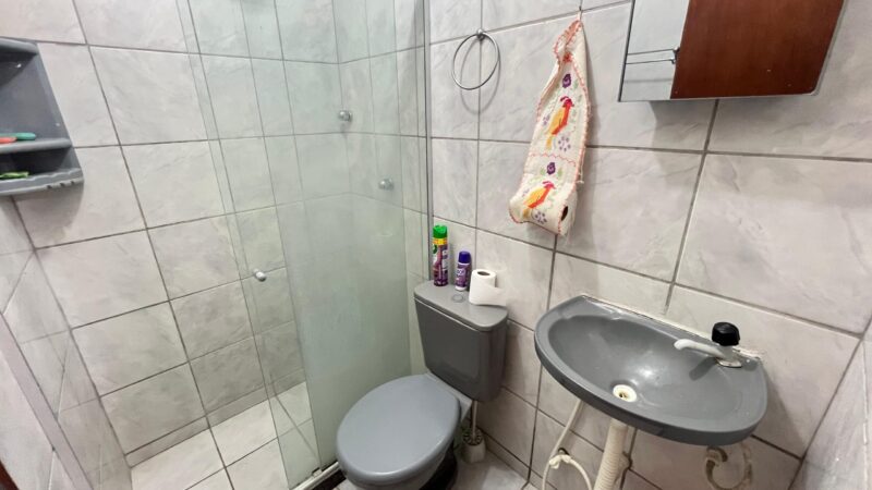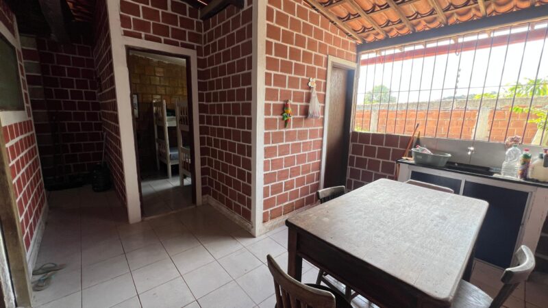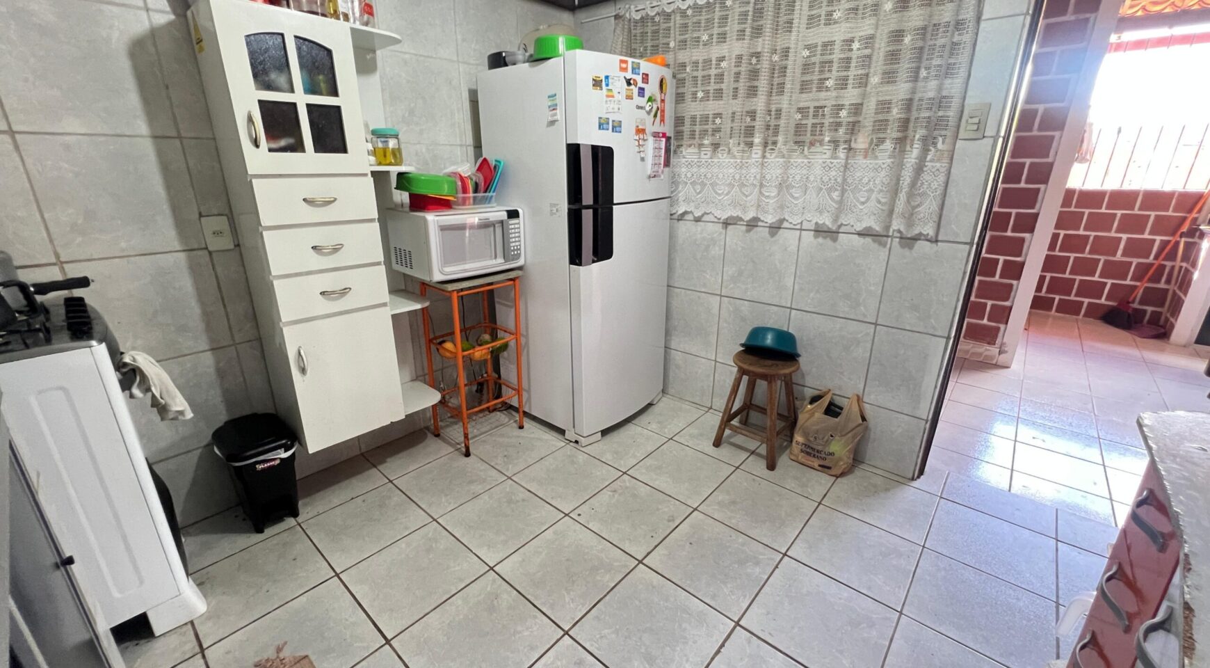 A cozinha é prática e bem distribuída, atendendo perfeitamente às necessidades da rotina familiar. O imóvel possui ainda 01 WC social, além de uma área de serviço coberta com banheiro de apoio, garantindo mais funcionalidade.