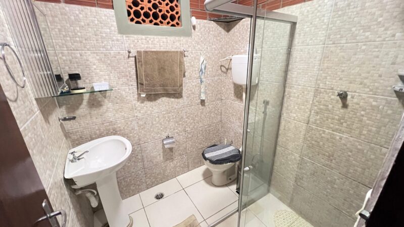 Na área íntima, a casa conta com três suítes espaçosas, proporcionando privacidade e conforto para todos os moradores, além de um quarto adicional que pode ser utilizado como dormitório, escritório ou espaço multiuso. Há também um banheiro social que atende perfeitamente às áreas comuns.