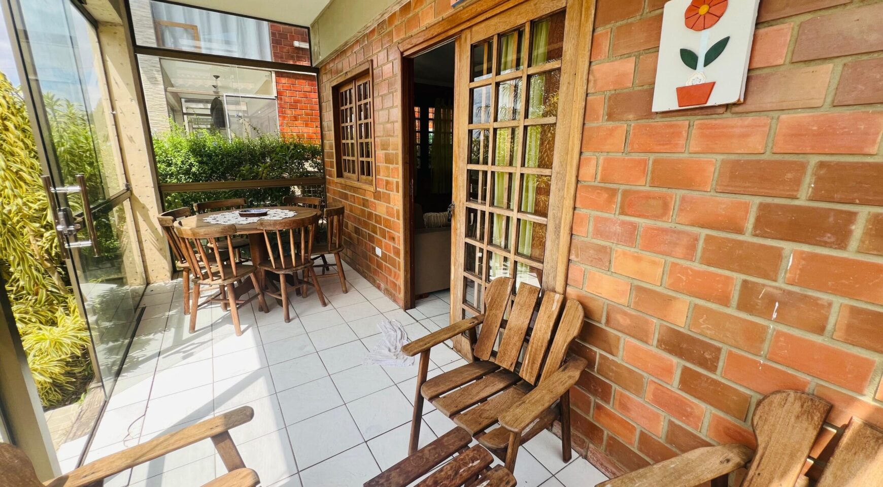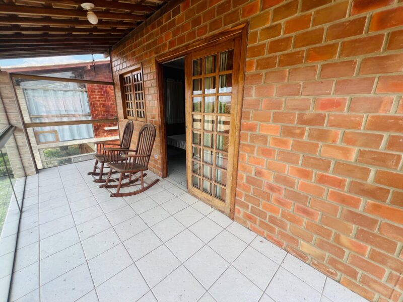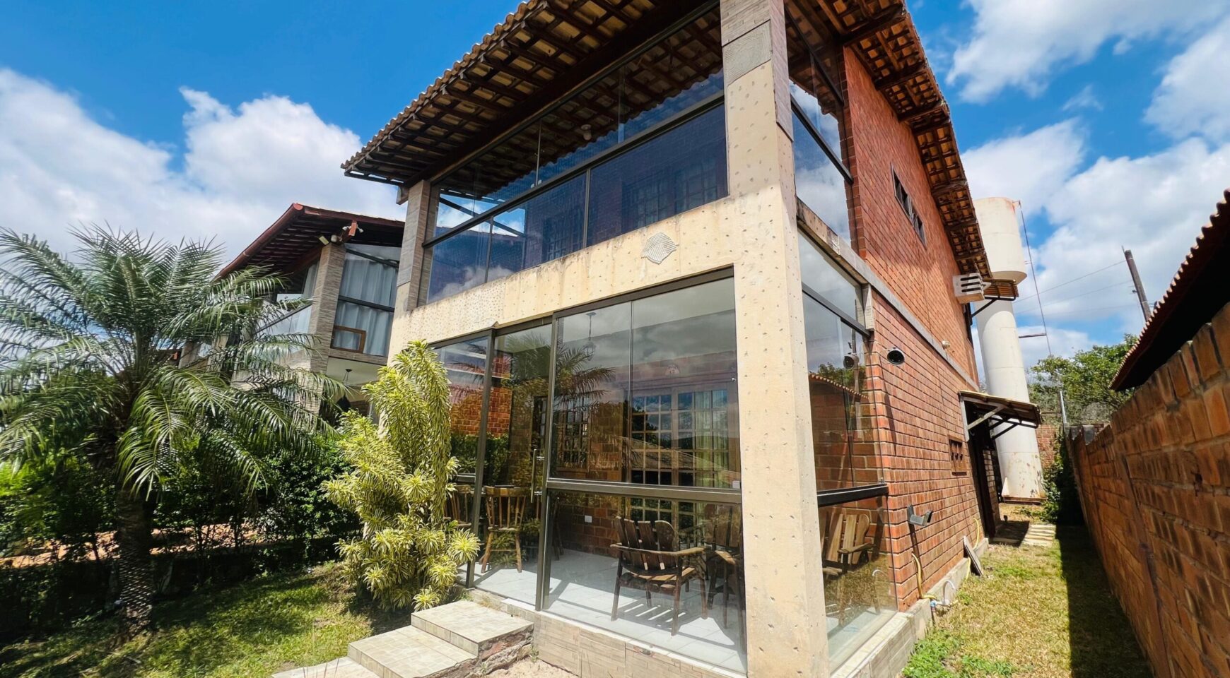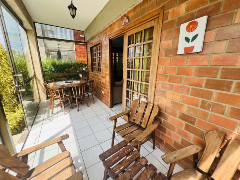 Varanda frontal fechada em vidros, ideal para receber visitas, criar um espaço de descanso ou transformá-la em um ambiente climatizado com vista para a área externa.