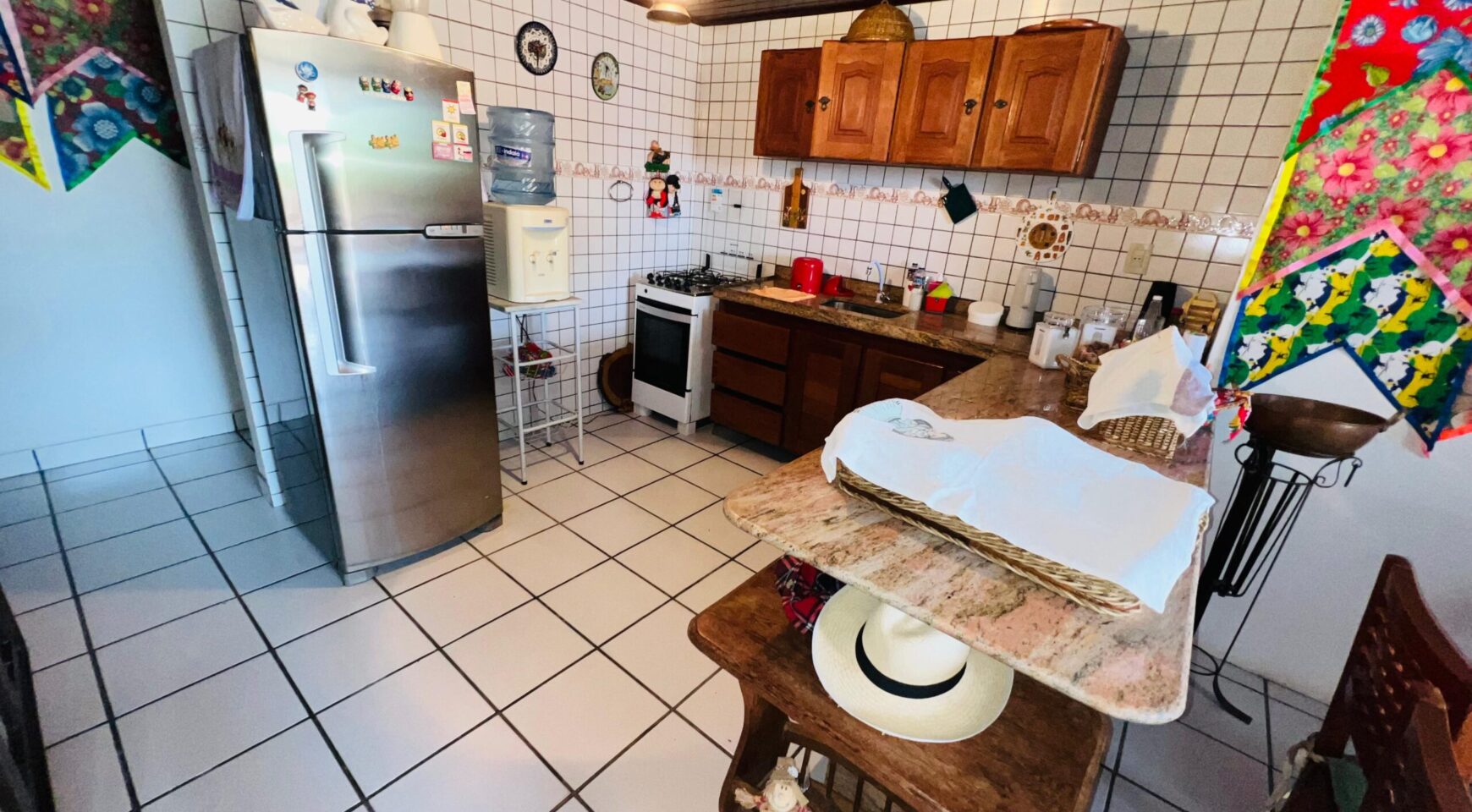 Cozinha integrada, funcional e equipada, facilitando a rotina e mantendo a comunicação com os demais ambientes.