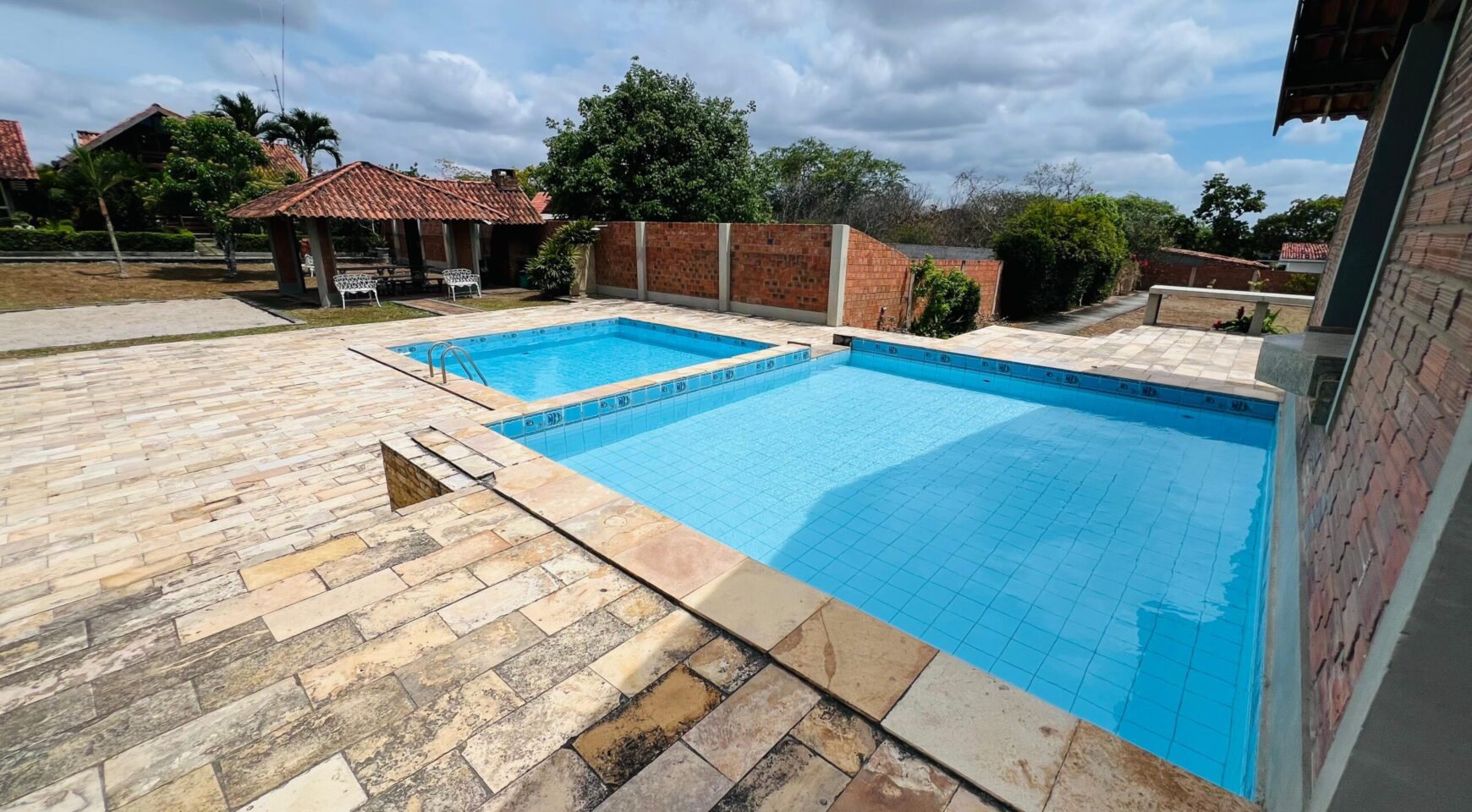 Piscina ampla para adultos e crianças;