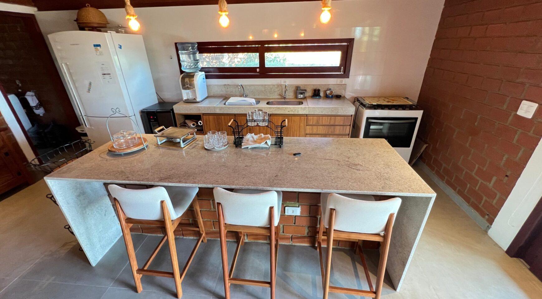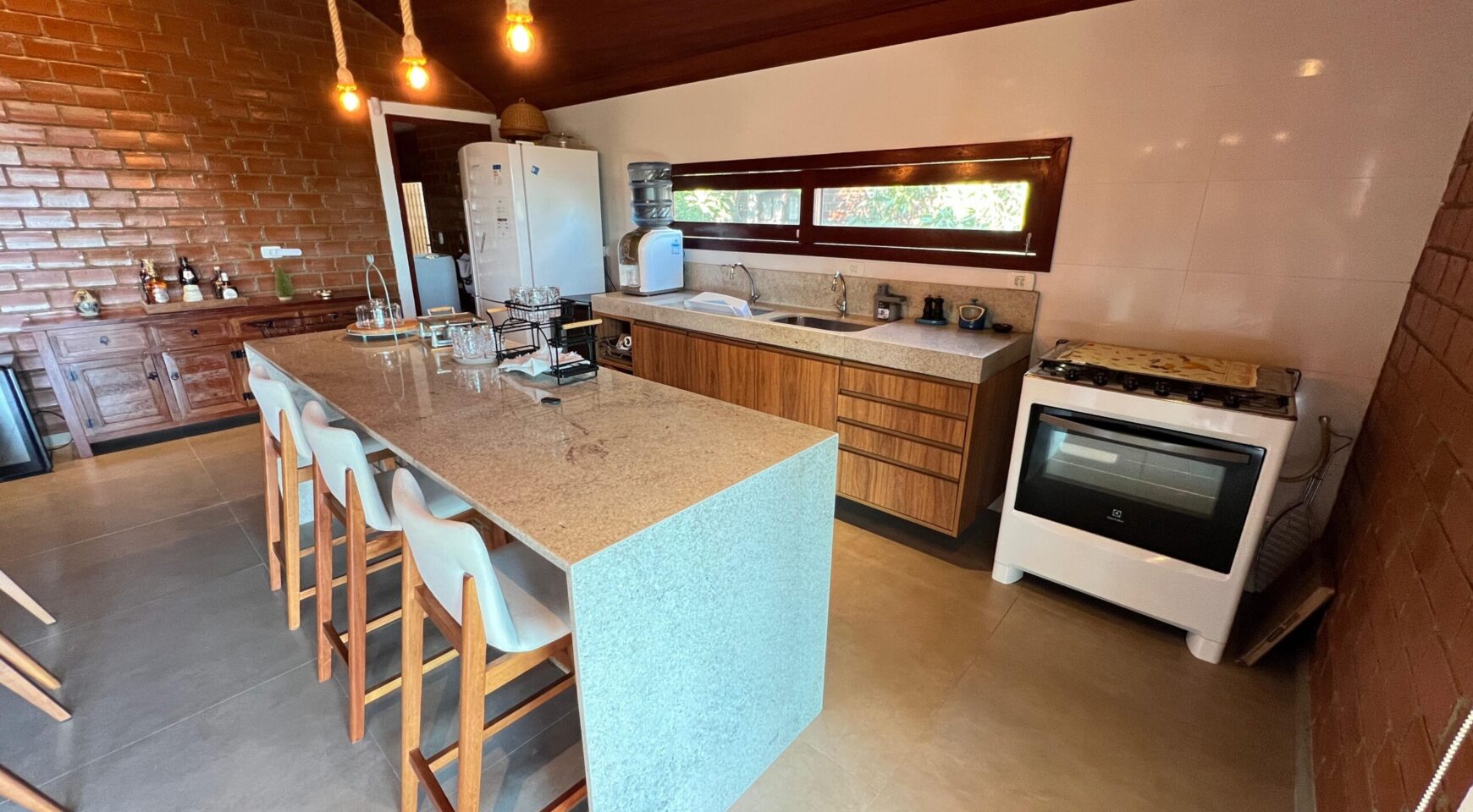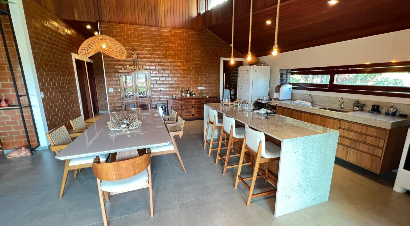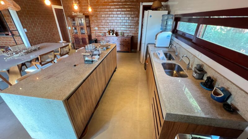O imóvel dispõe de uma ampla sala para dois ambientes, proporcionando integração e luminosidade. A cozinha integrada oferece funcionalidade e modernidade, conectada à área de serviço e à dependência completa. No térreo, um lavabo atende às visitas com comodidade.