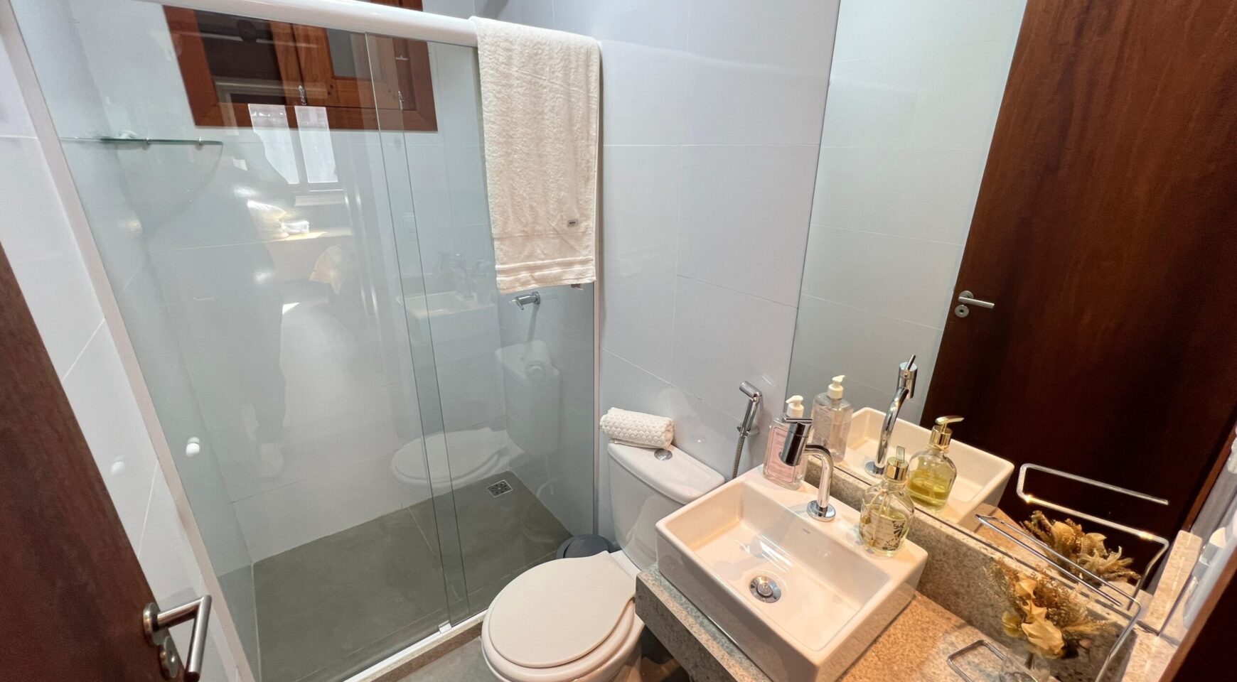 A área íntima conta com 3 suítes, todas espaçosas e bem ventiladas, além de um WC social que complementa a distribuição dos ambientes. Os terraços amplos garantem conforto e versatilidade, enquanto a varanda gourmet é um verdadeiro destaque: espaçosa, bem projetada e com vista deslumbrante para as montanhas, ideal para momentos de lazer e convivência.