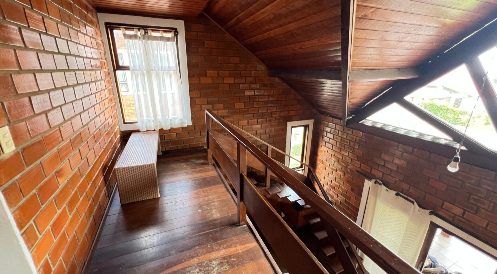 No andar superior, encontram-se três quartos, sendo uma suíte espaçosa com varanda privativa, que proporciona ventilação e uma vista agradável do condomínio. Os outros dois quartos são bem distribuídos e atendidos por um banheiro social, garantindo conforto e funcionalidade para a família.