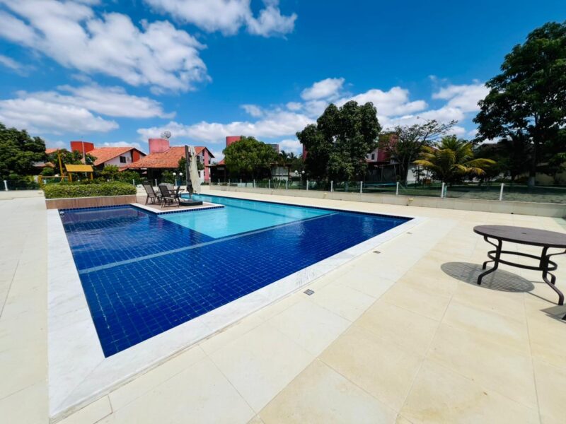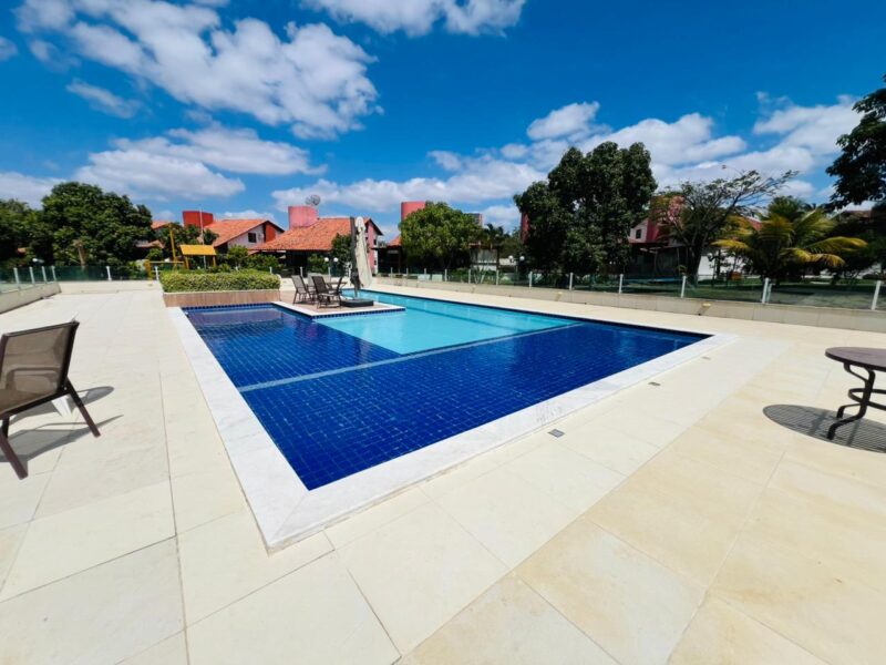O condomínio conta com infraestrutura completa de lazer, incluindo piscina adulto e infantil, salão de festas amplo com banheiros de apoio, campo de futebol, playground e áreas comuns bem cuidadas, ideais para momentos de convivência e diversão.