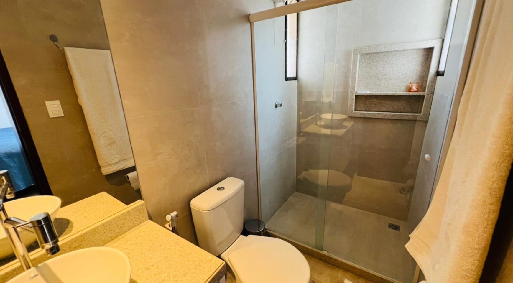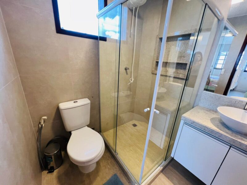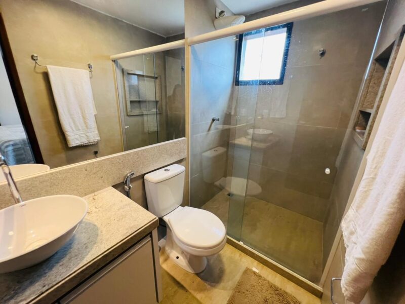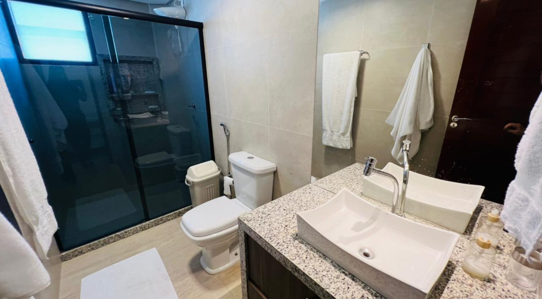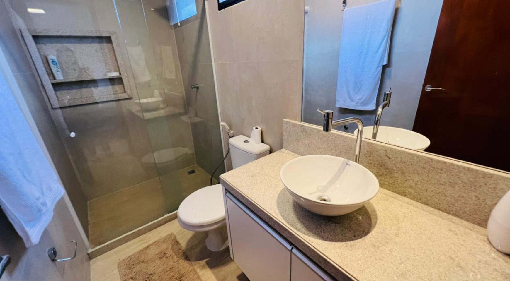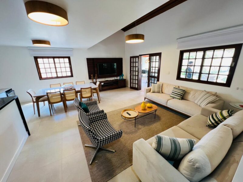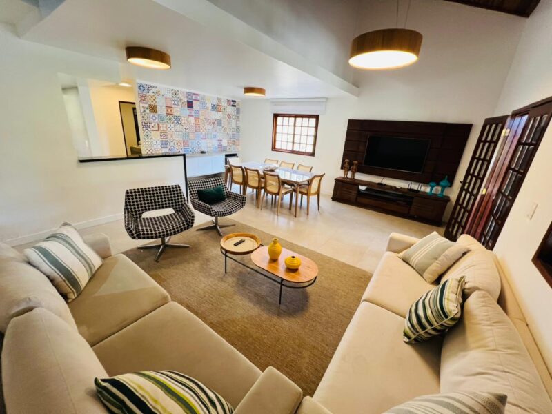 A cozinha é totalmente equipada, planejada para oferecer praticidade no dia a dia, e integrada aos demais ambientes de convivência. A casa possui também área de serviço mobiliada, funcional e bem distribuída.