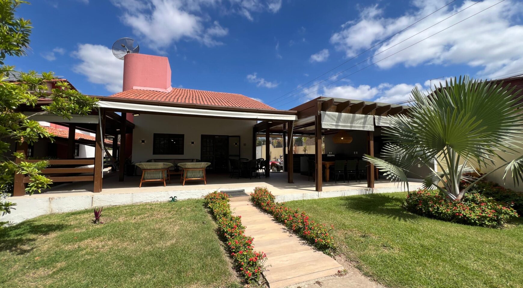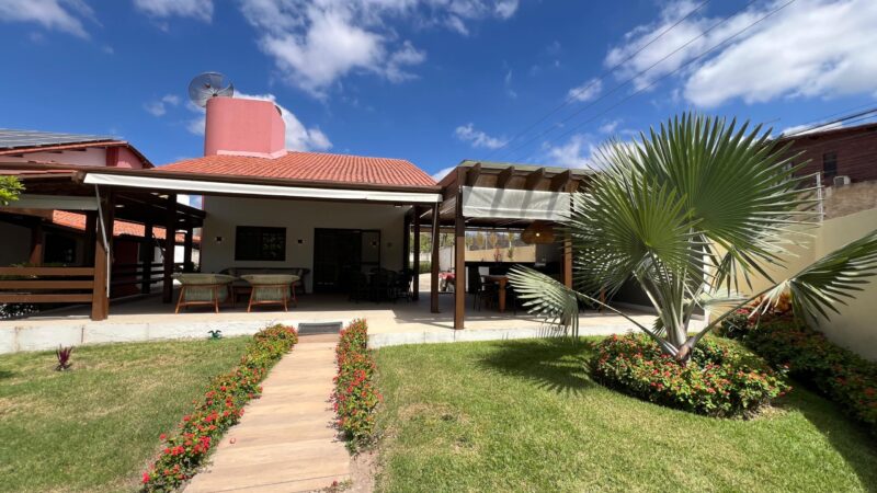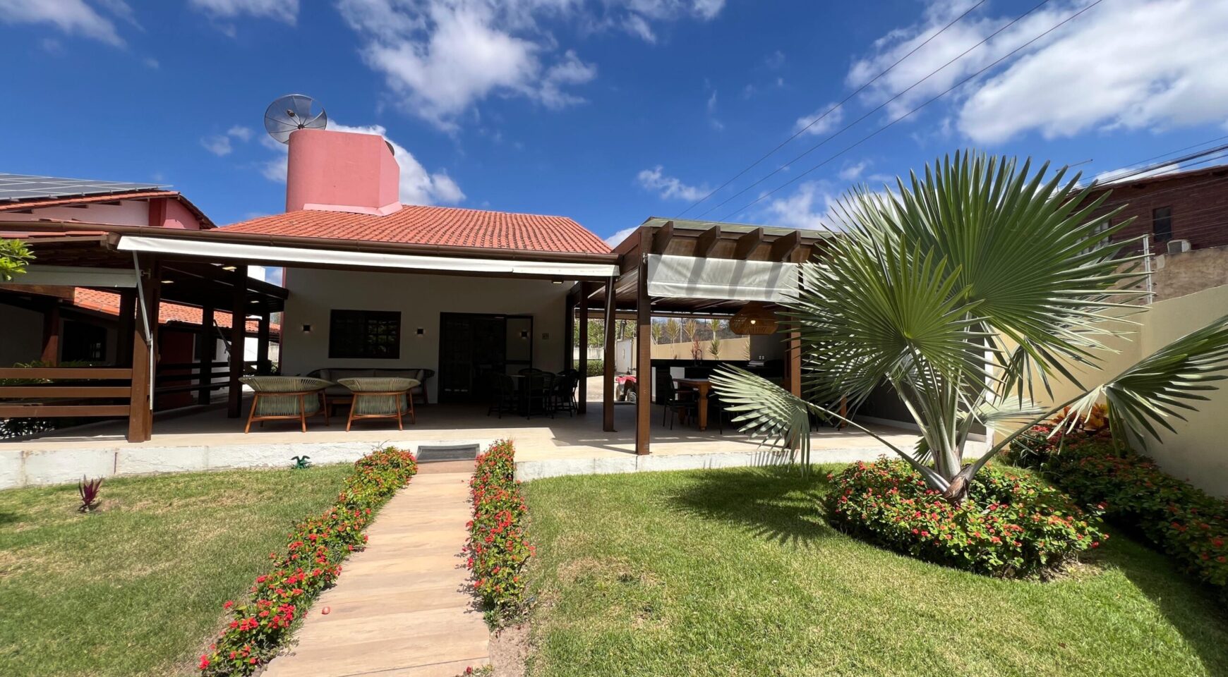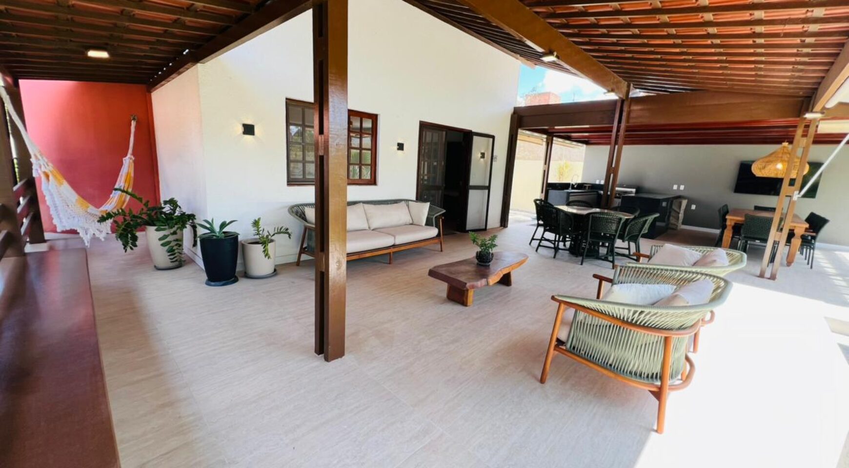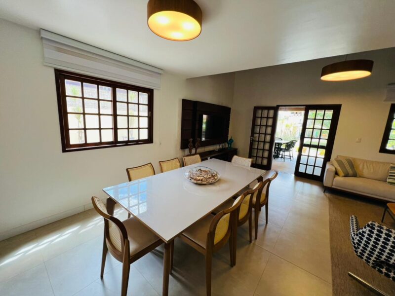 Internamente, a casa dispõe de uma sala ampla para dois ambientes, com excelente iluminação natural, integrada a um elegante hall de entrada. São 5 suítes espaçosas, garantindo conforto, privacidade e comodidade para todos os moradores. O imóvel conta ainda com lavabo, ideal para atender às visitas.