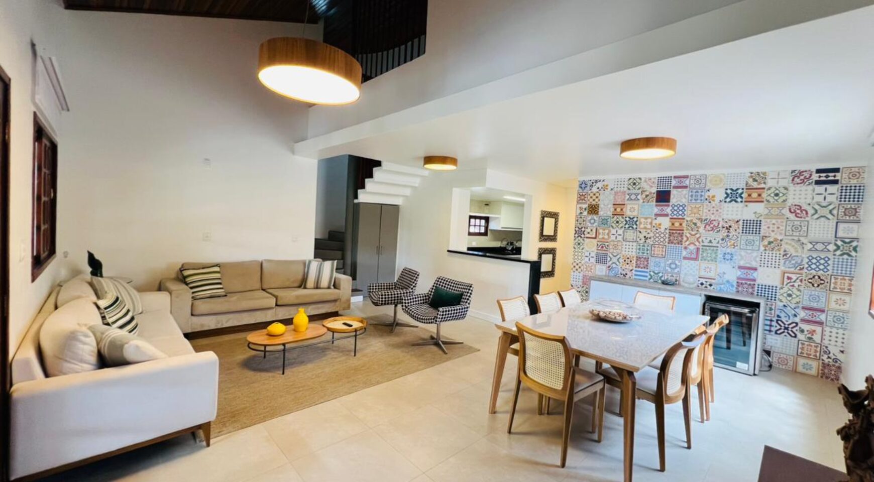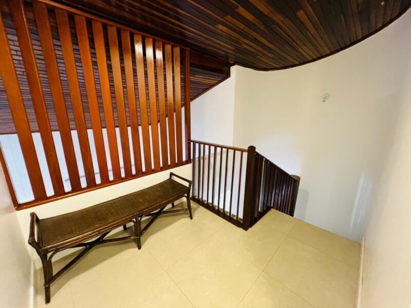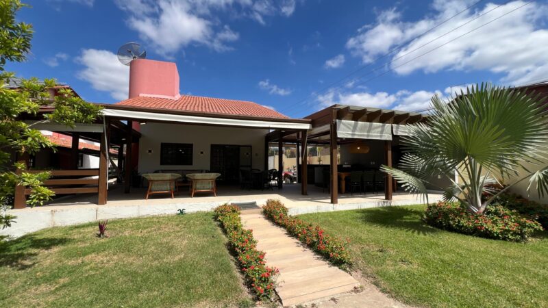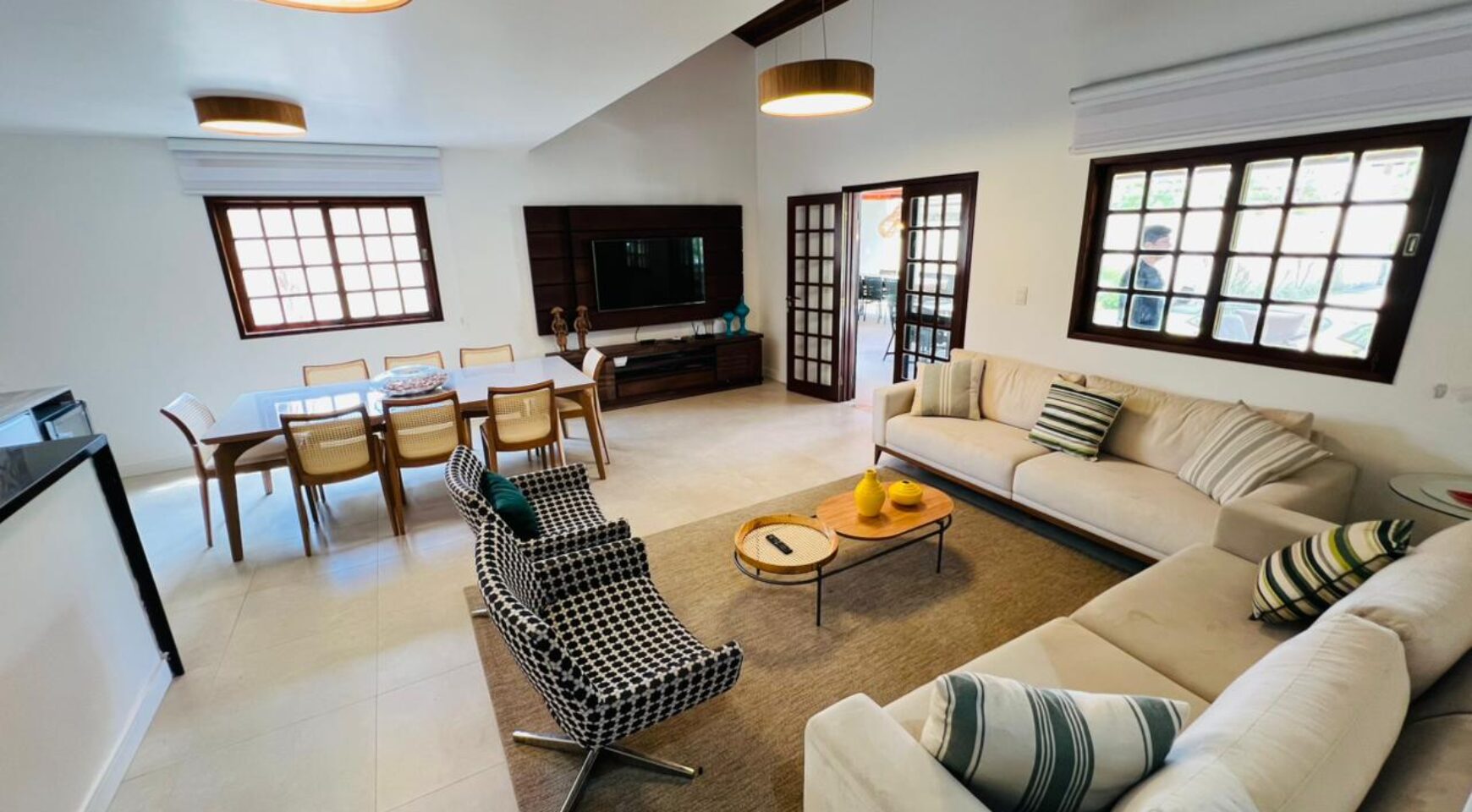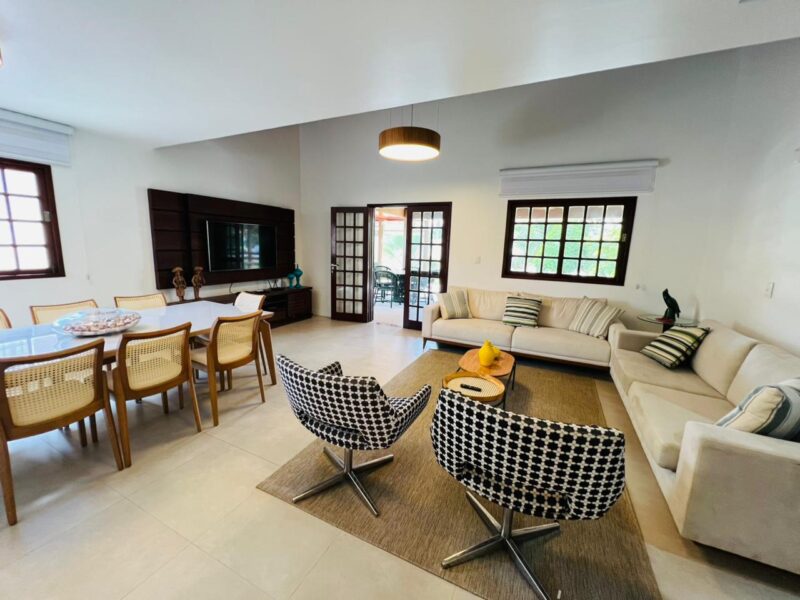 Internamente, a casa dispõe de uma sala ampla para dois ambientes, com excelente iluminação natural, integrada a um elegante hall de entrada. São 5 suítes espaçosas, garantindo conforto, privacidade e comodidade para todos os moradores. O imóvel conta ainda com lavabo, ideal para atender às visitas.