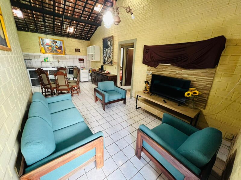 O imóvel conta com um belo jardim, terraço acolhedor e uma sala ampla para dois ambientes, proporcionando integração e conforto para receber amigos e familiares. A cozinha integrada traz praticidade ao dia a dia e valoriza a convivência entre os espaços.