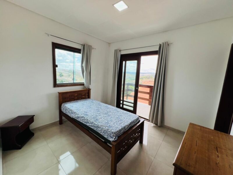No pavimento superior, encontram-se 2 suítes, ambas com excelente ventilação e varanda, proporcionando mais privacidade e um espaço agradável para descanso. Há também um hall (roll) de circulação, que organiza o acesso aos dormitórios de forma prática e elegante.