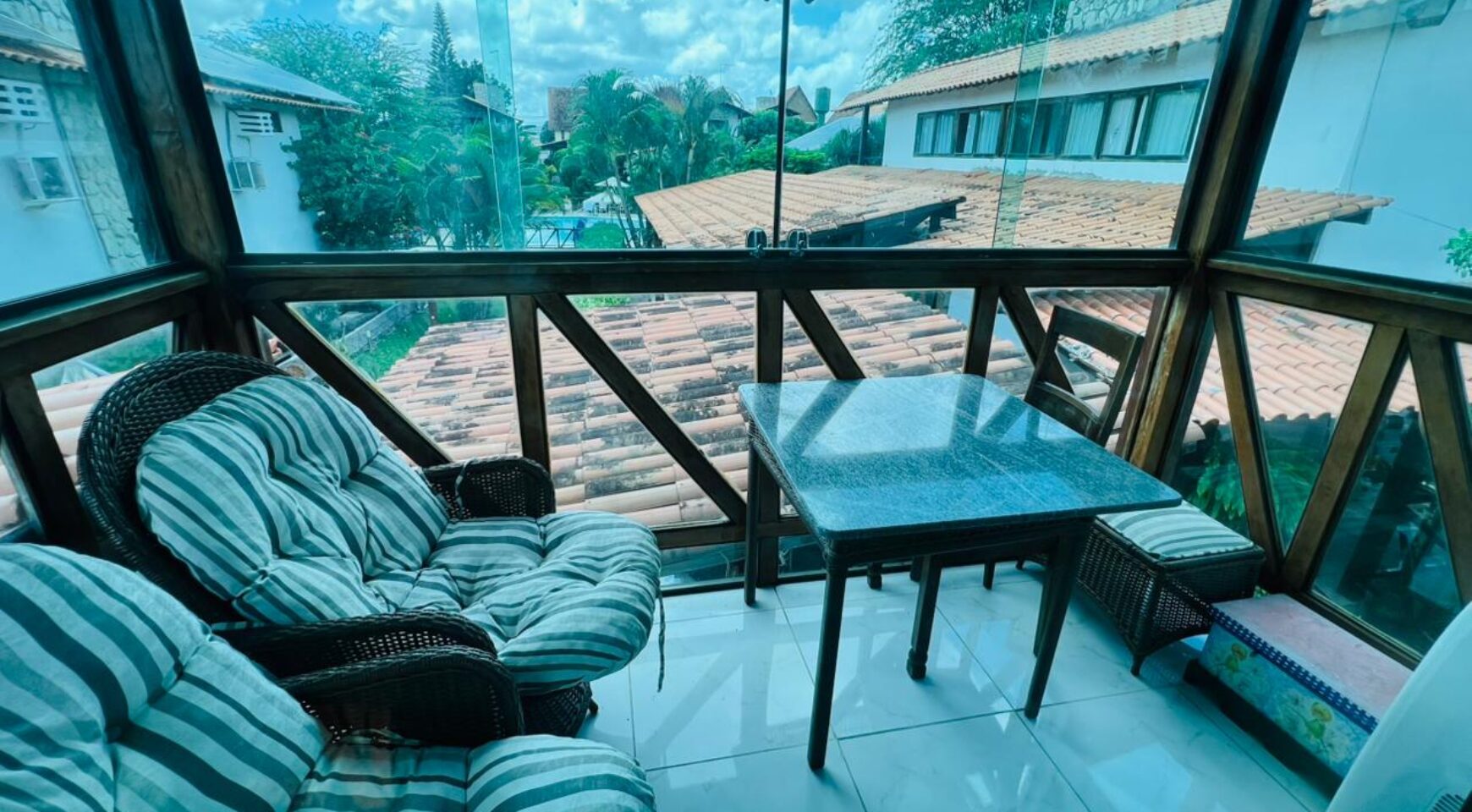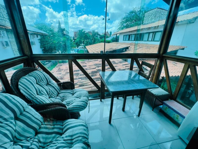 No andar superior, encontram-se duas suítes amplas, projetadas para oferecer privacidade e bem-estar. Uma das suítes dispõe de varanda privativa, ideal para relaxar e aproveitar a vista, tornando o ambiente ainda mais agradável.