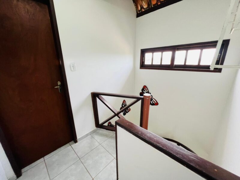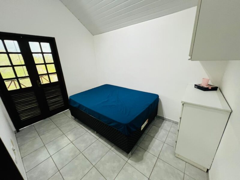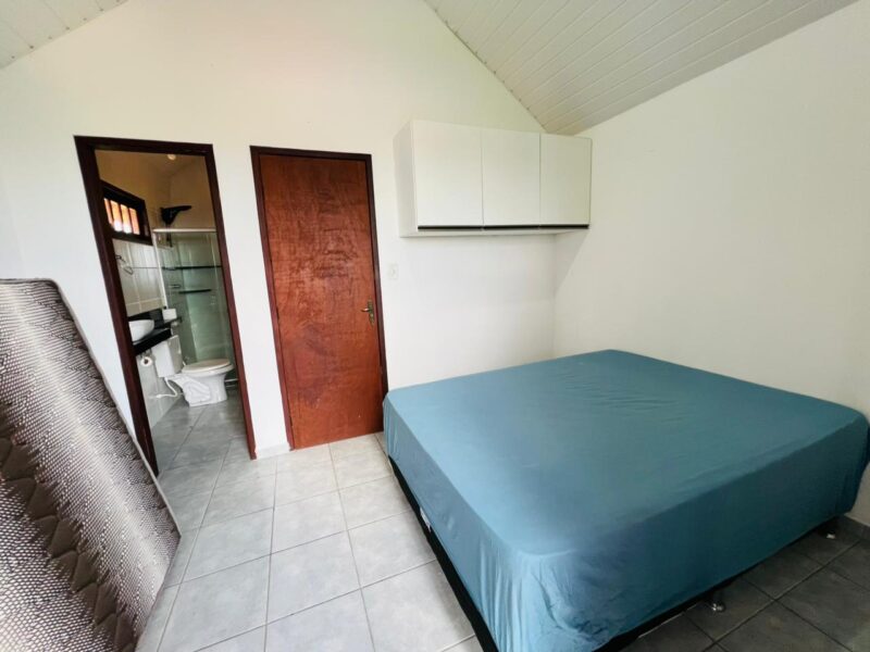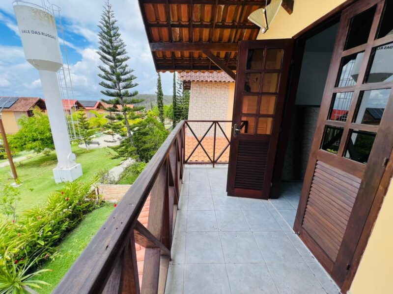 No andar superior, encontram-se duas suítes confortáveis, ambas com varandas privativas que proporcionam uma vista simplesmente encantadora para o vale. Acordar com essa paisagem é um privilégio diário — um verdadeiro refúgio para renovar as energias.