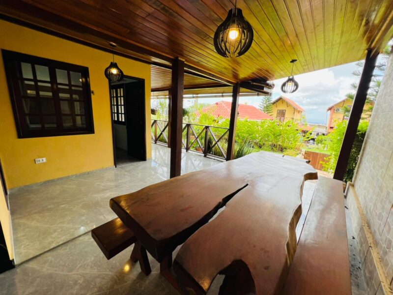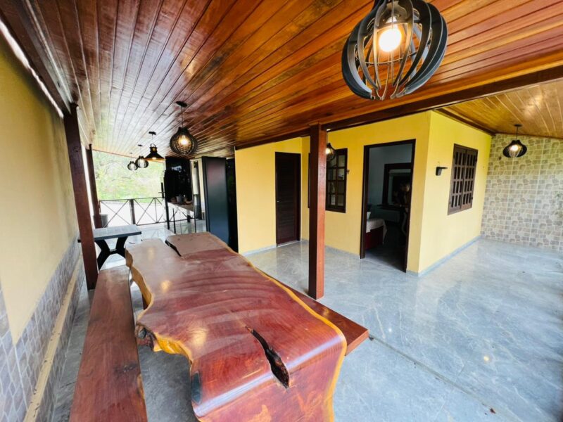 Ao chegar, você é recebido por um ambiente harmonioso e arborizado, onde o canto dos pássaros e a brisa fresca criam uma atmosfera acolhedora e relaxante.