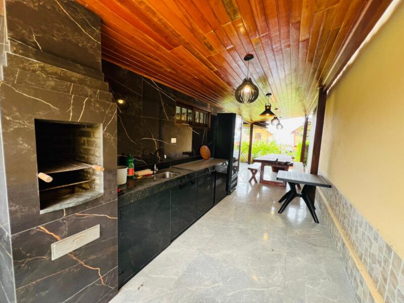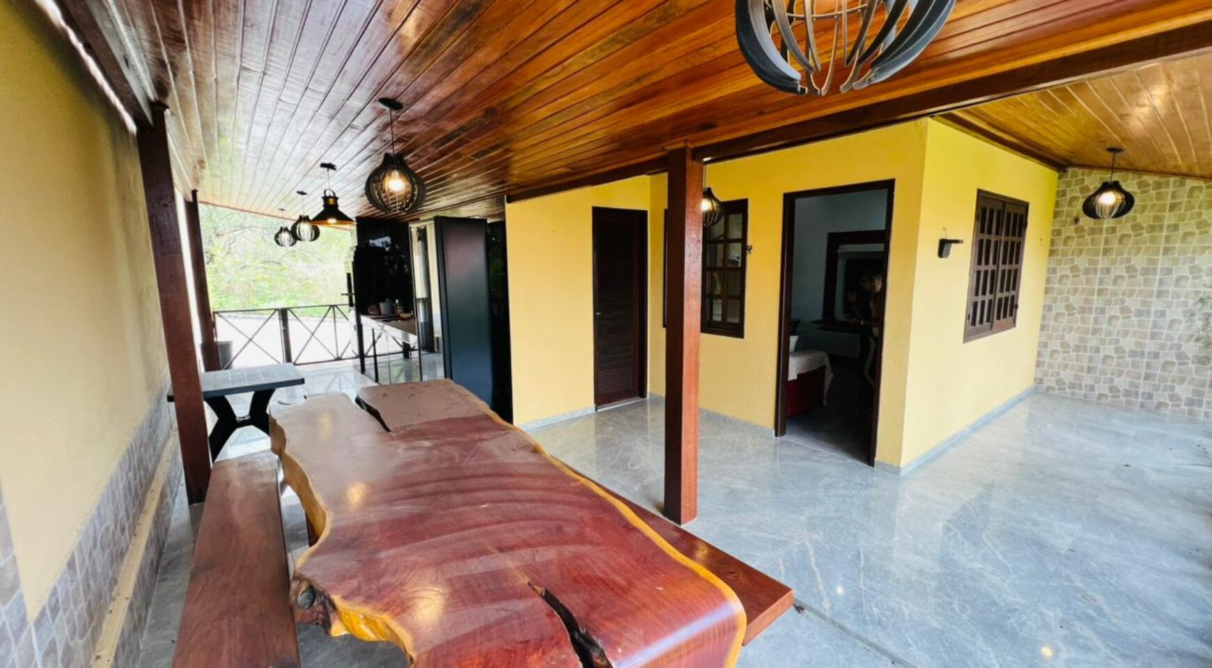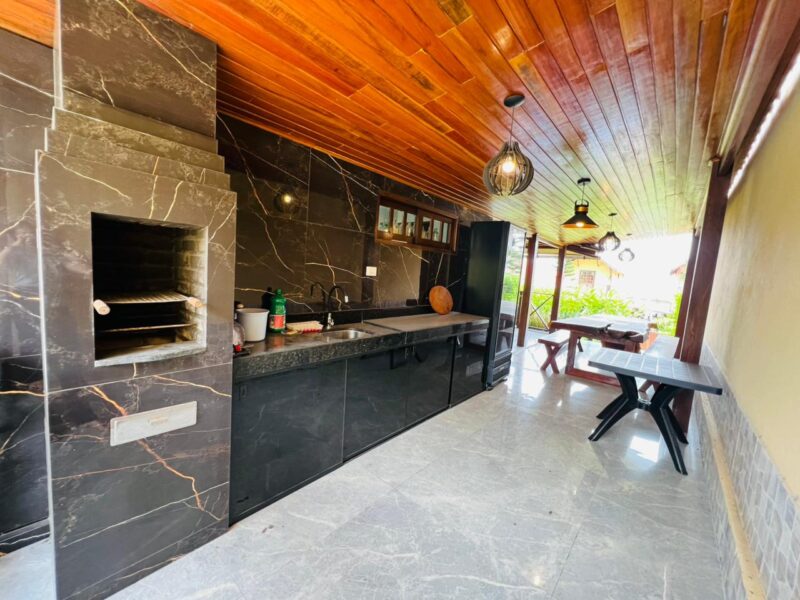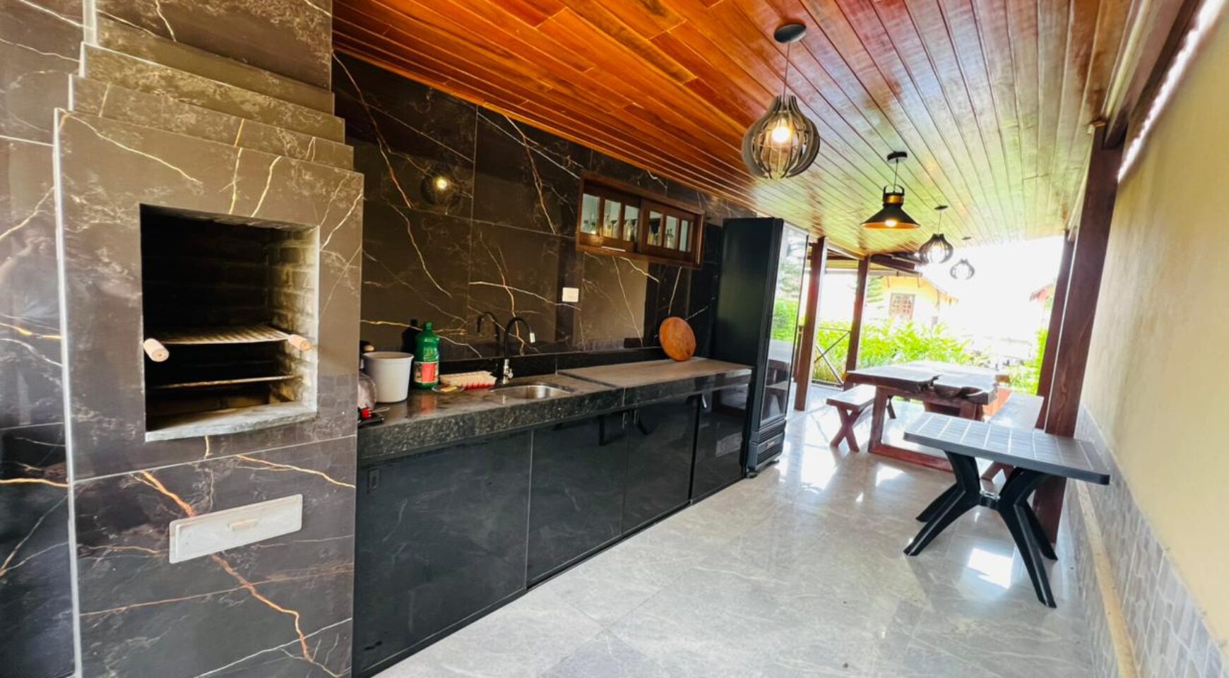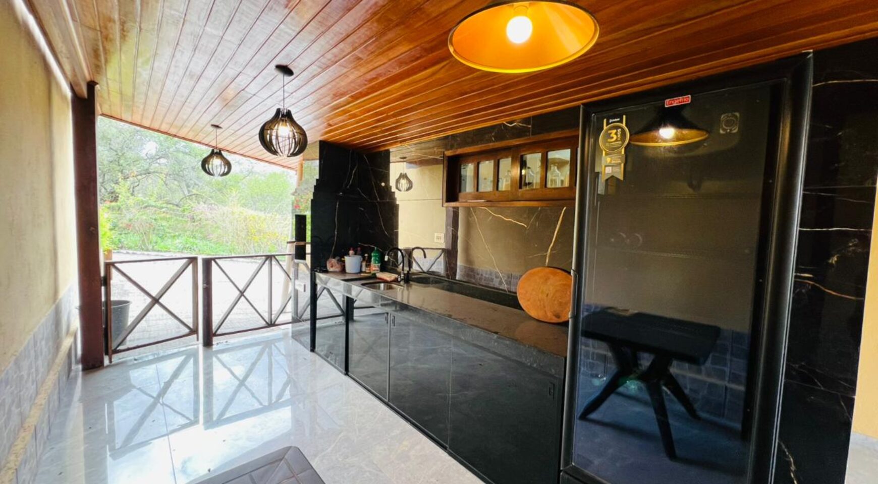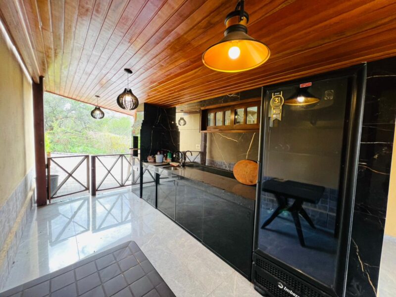 A área gourmet é um dos grandes diferenciais da casa: espaçosa e aconchegante, é ideal para reunir família e amigos em momentos especiais, apreciando o clima serrano e a paisagem exuberante.