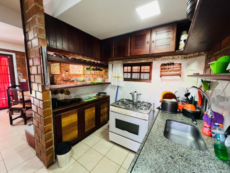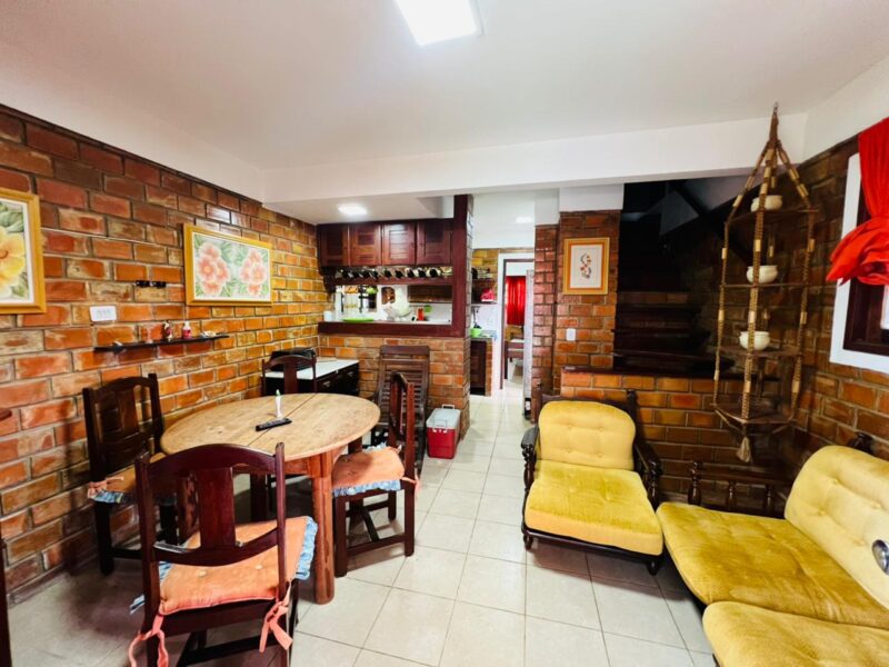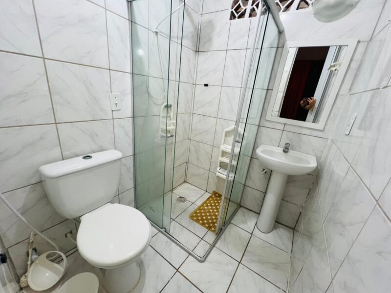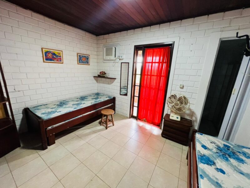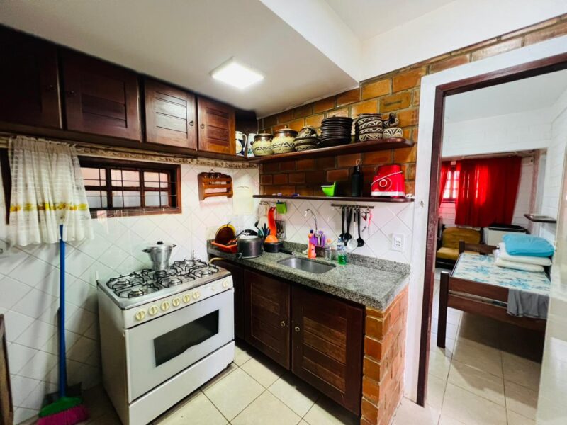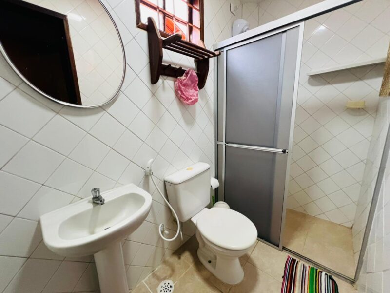 Ainda no piso inferior, a casa conta com dependência completa, um banheiro social e uma suíte com closet, garantindo comodidade e acessibilidade, especialmente para quem prefere evitar escadas no dia a dia.